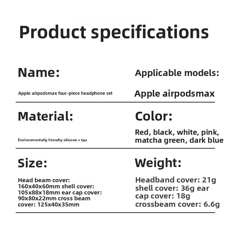 Protective Cover: Designed for Airpods Max, offering full protection against scratches and minor impacts.